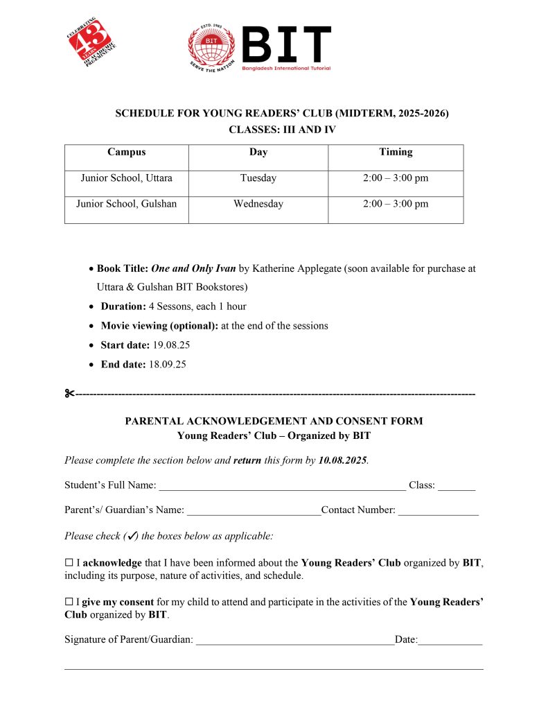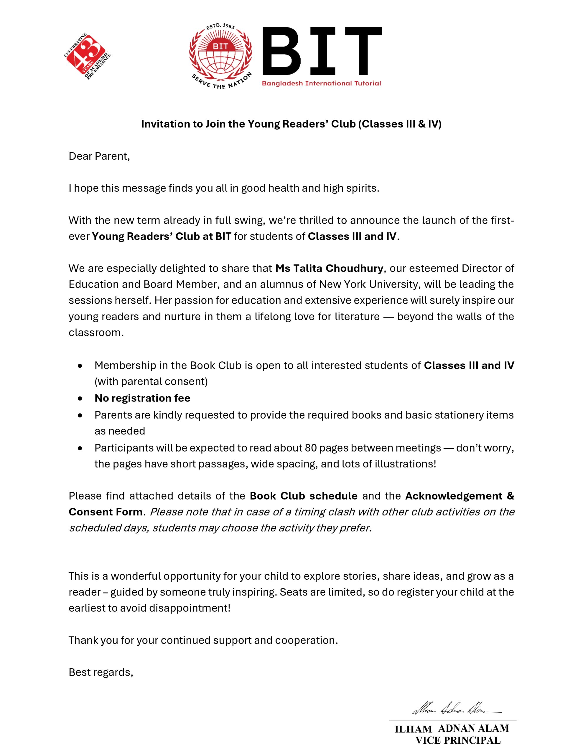 Invitation to Join the Young Readers’ Club (Classes III & IV)