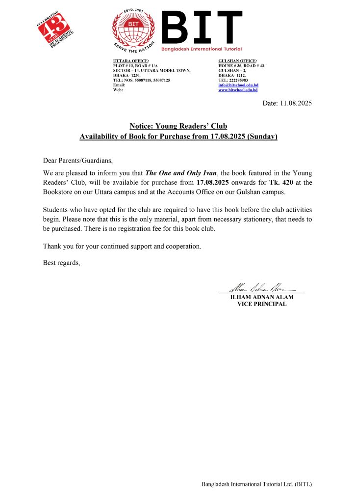 NOTICE FOR YOUNG READERS’ CLUB 2025