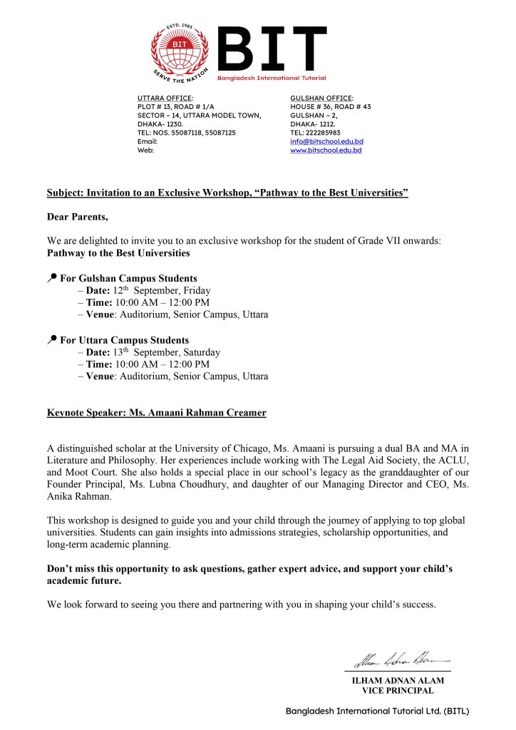 Invitation to the Workshop – ‘Pathway to the Best Universities’